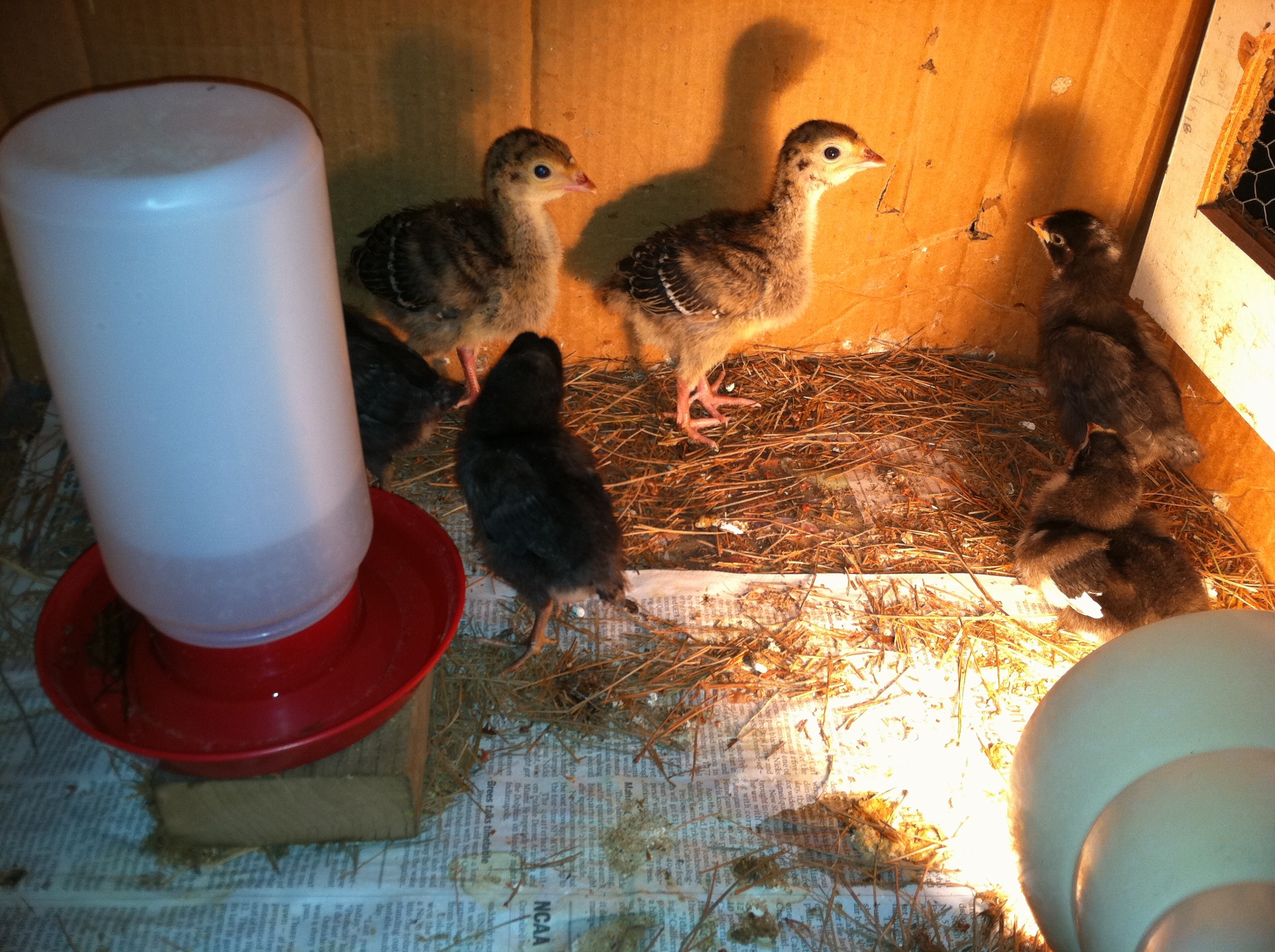 The Farmer just recently purchased some new animals for the Farm… we introduce our newest members of the Farm – Bardrock and Jersey baby chicks, and baby turkey poults.   The turkeys have already grown so much just over the past week, and both the chicks and poults have recently become much more vocal, keeping us entertained with lots of little “cheep, cheeps” throughout the day.